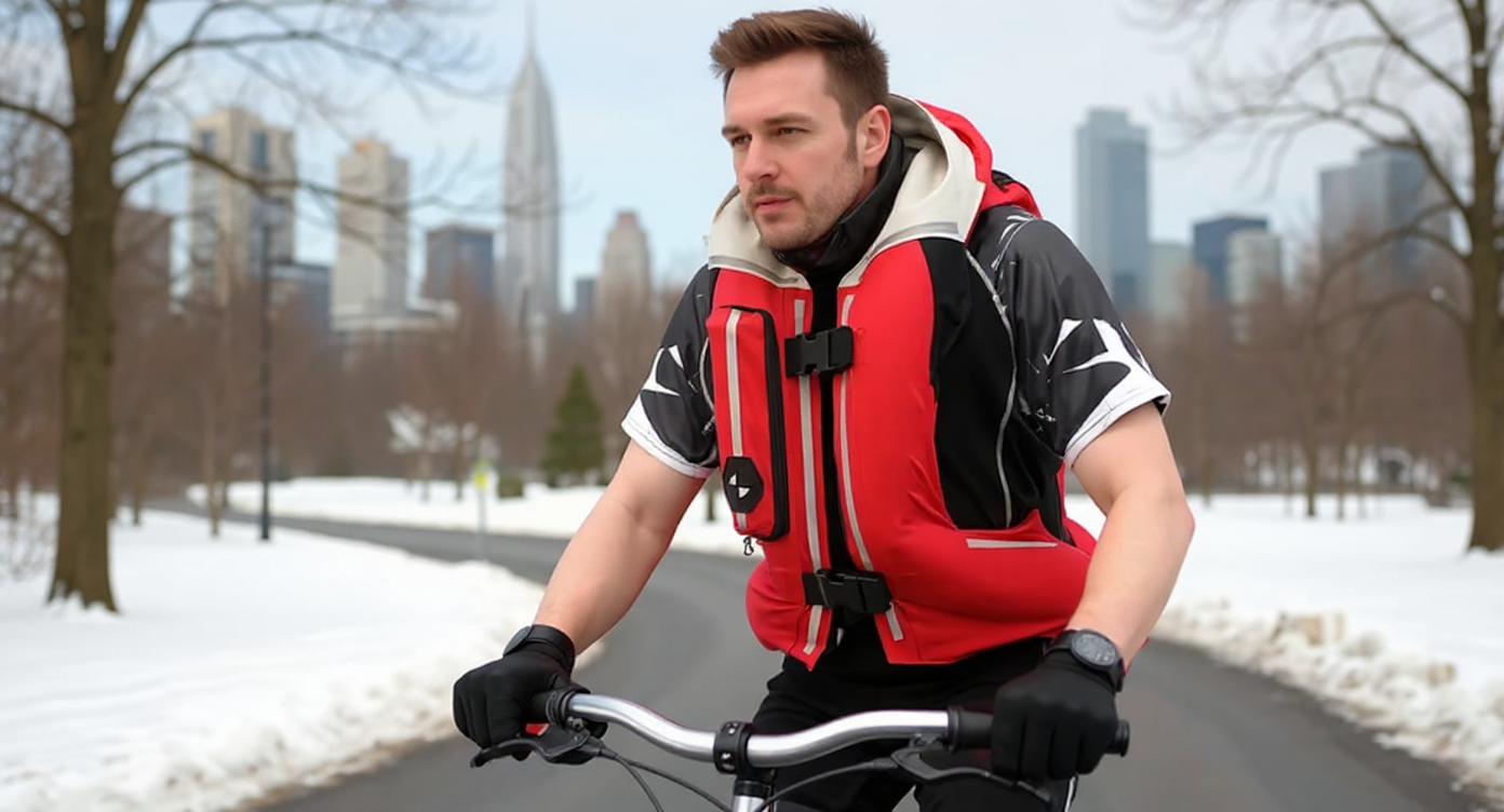 Casaco air-bag para fazer passeio de bicicleta no Central Park